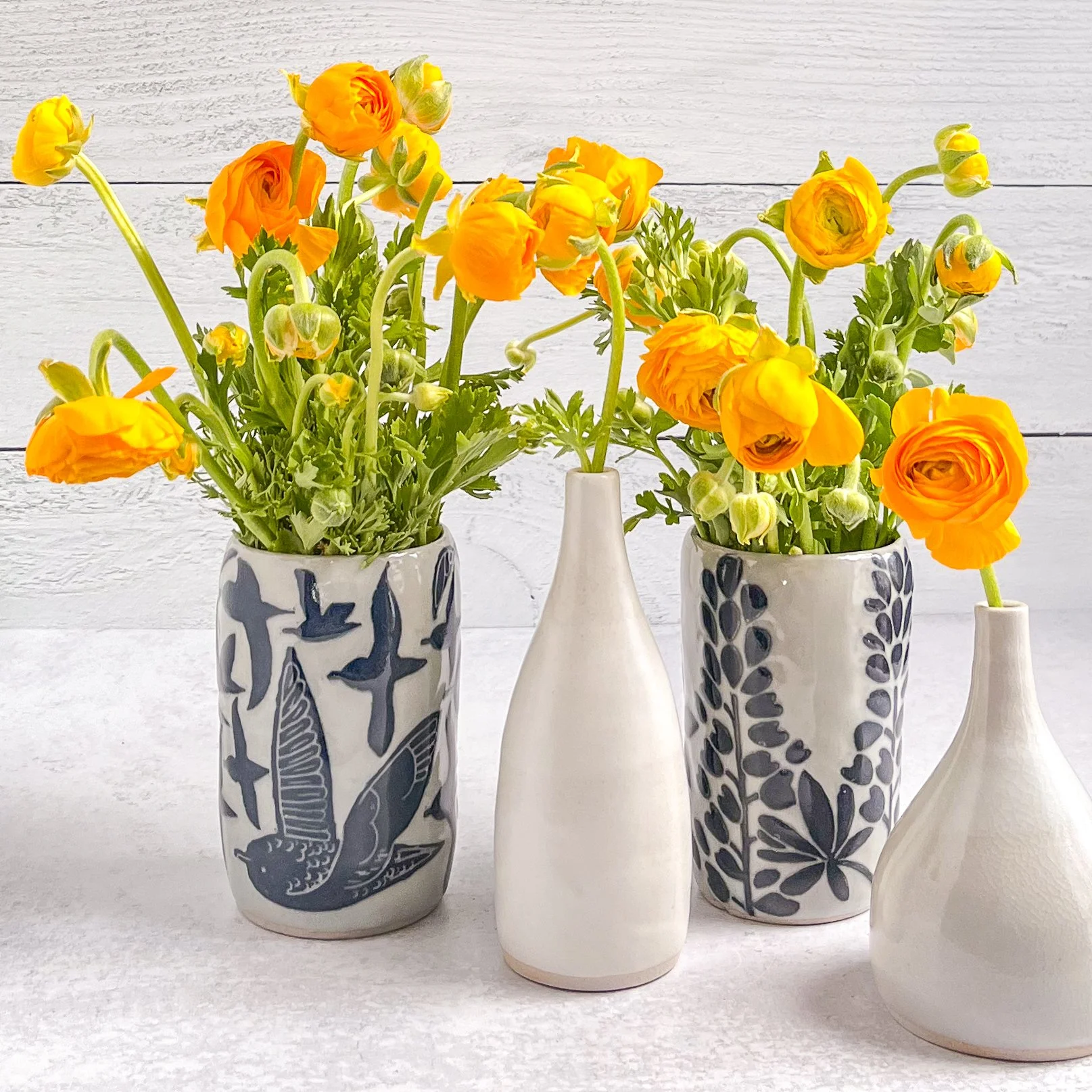 Tern Over Tide is handmade sgraffito ceramics, each piece thrown on the wheel, then illustrated by hand using a centuries-old technique of drawing through layers of clay. Birds in flight, rolling waves, wildflowers, ocean creatures. Every line is carved freehand. No two pieces are exactly alike.